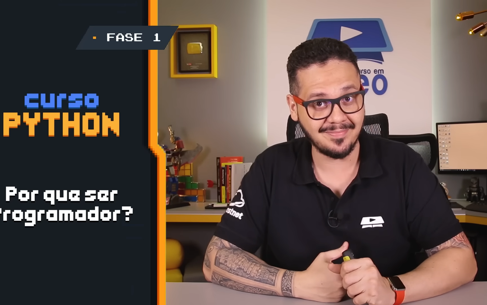 Você está pensando em ser um Programador e não sabe por onde começar? Pois nessa aula vamos te dar todas as informações e mostrar o caminho a seguir. Gostou da aula? Então torne-se um Gafanhoto APOIADOR do CursoemVídeo acessando o site cursoemvideo.com/apoie Segundo um levantamento feito pela Code.org, em menos de 10 anos, serão necessários 1 milhão e 400 mil programadores no mercado de trabalho, mas se tudo continuar nesse ritmo, teremos apenas 400 mil formados. Isso representa uma deficiência de 1 milhão de profissionais na área em menos de uma década. A programação é necessária em vários segmentos atualmente, seja em dispositivos computacionais tradicionais, em portáteis, eletrodomésticos inteligentes, vestíveis, realidade aumentada, realidade virtual e aparelhos da Internet das Coisas (IoT).